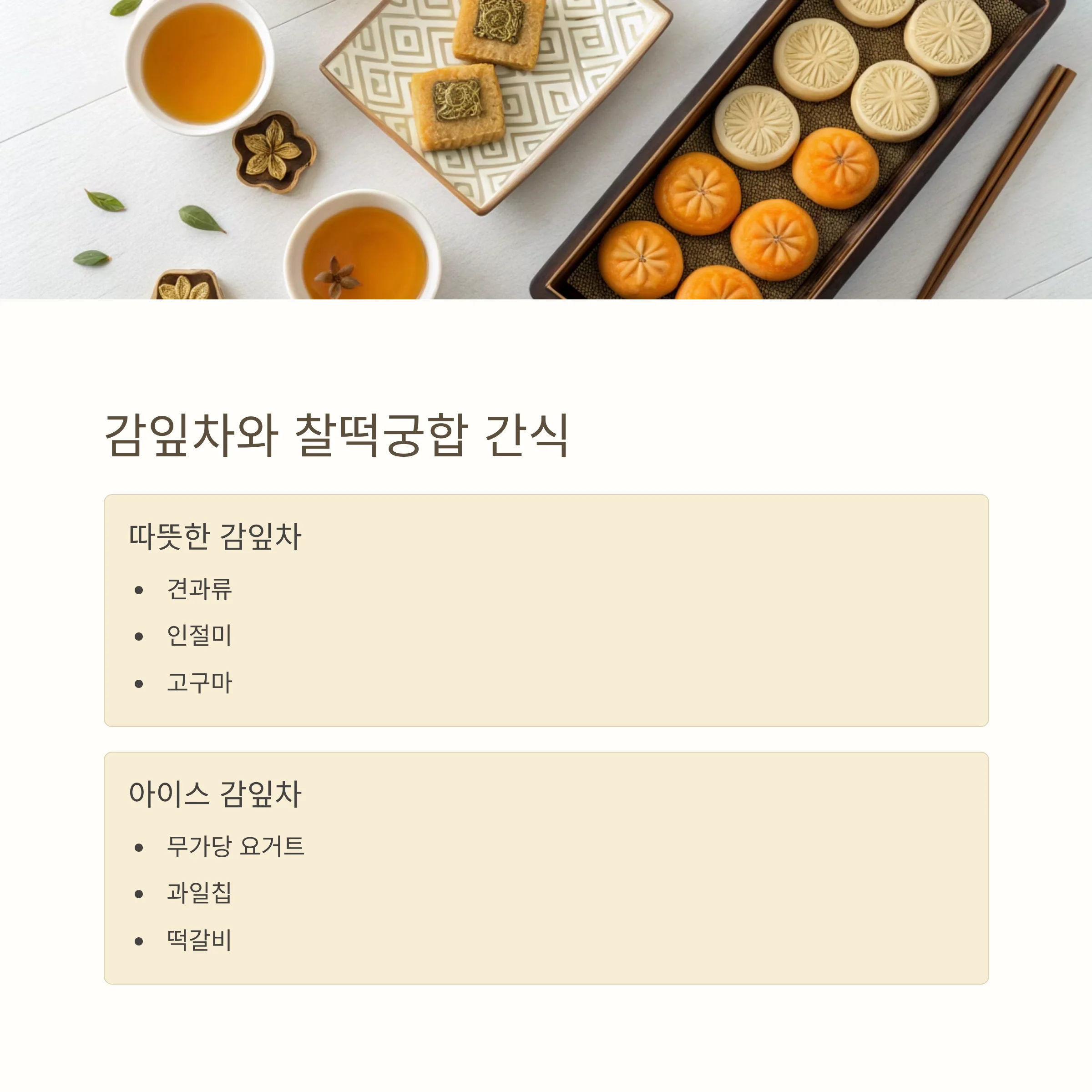 | 감잎차 종류 | 함께 먹으면 좋은 간식 |