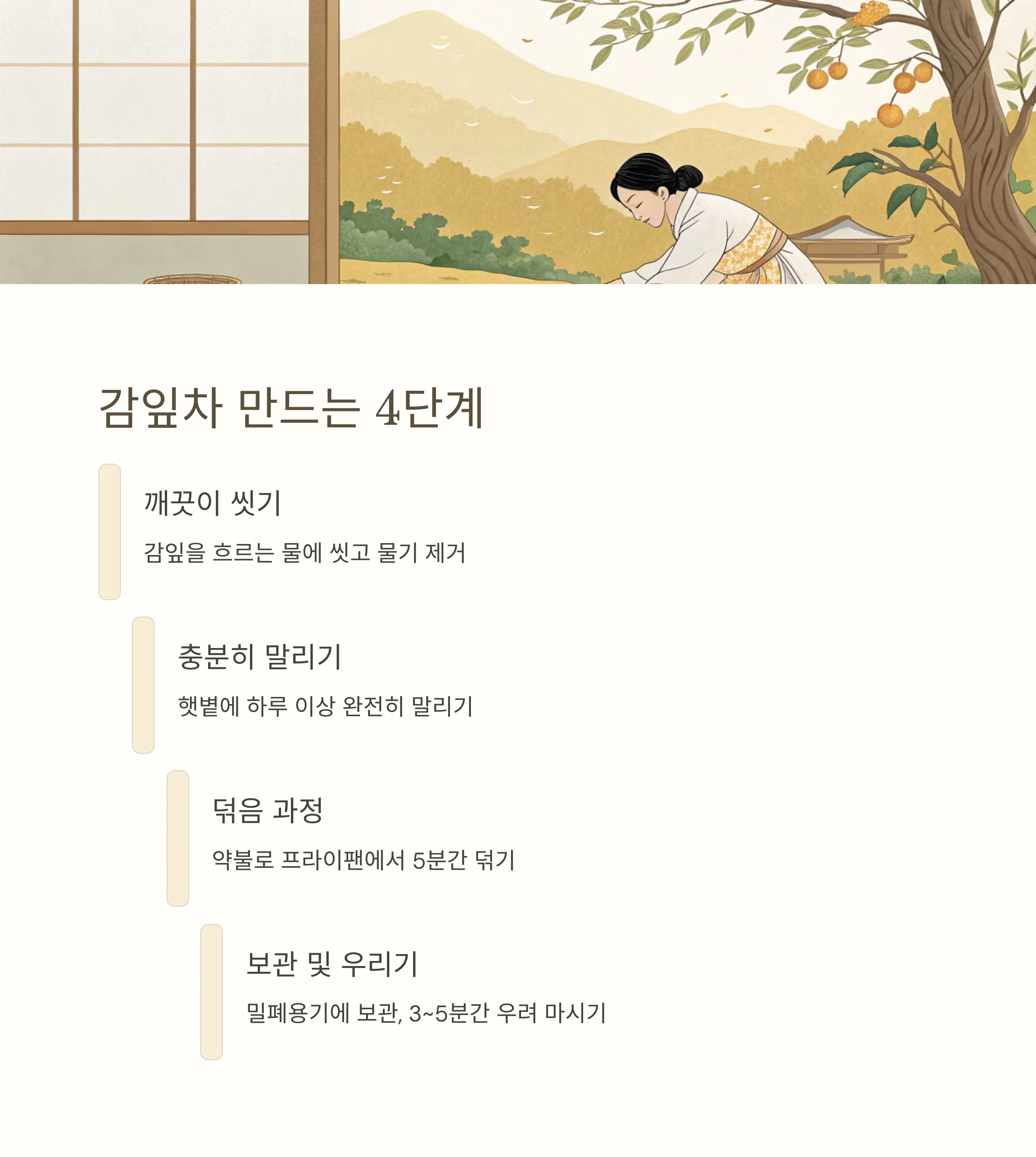 이번 글에서는 감잎차 만드는법과 함께 효능과 보관법, 더욱 맛있게 즐기는 팁까지 모두 알려드립니다.