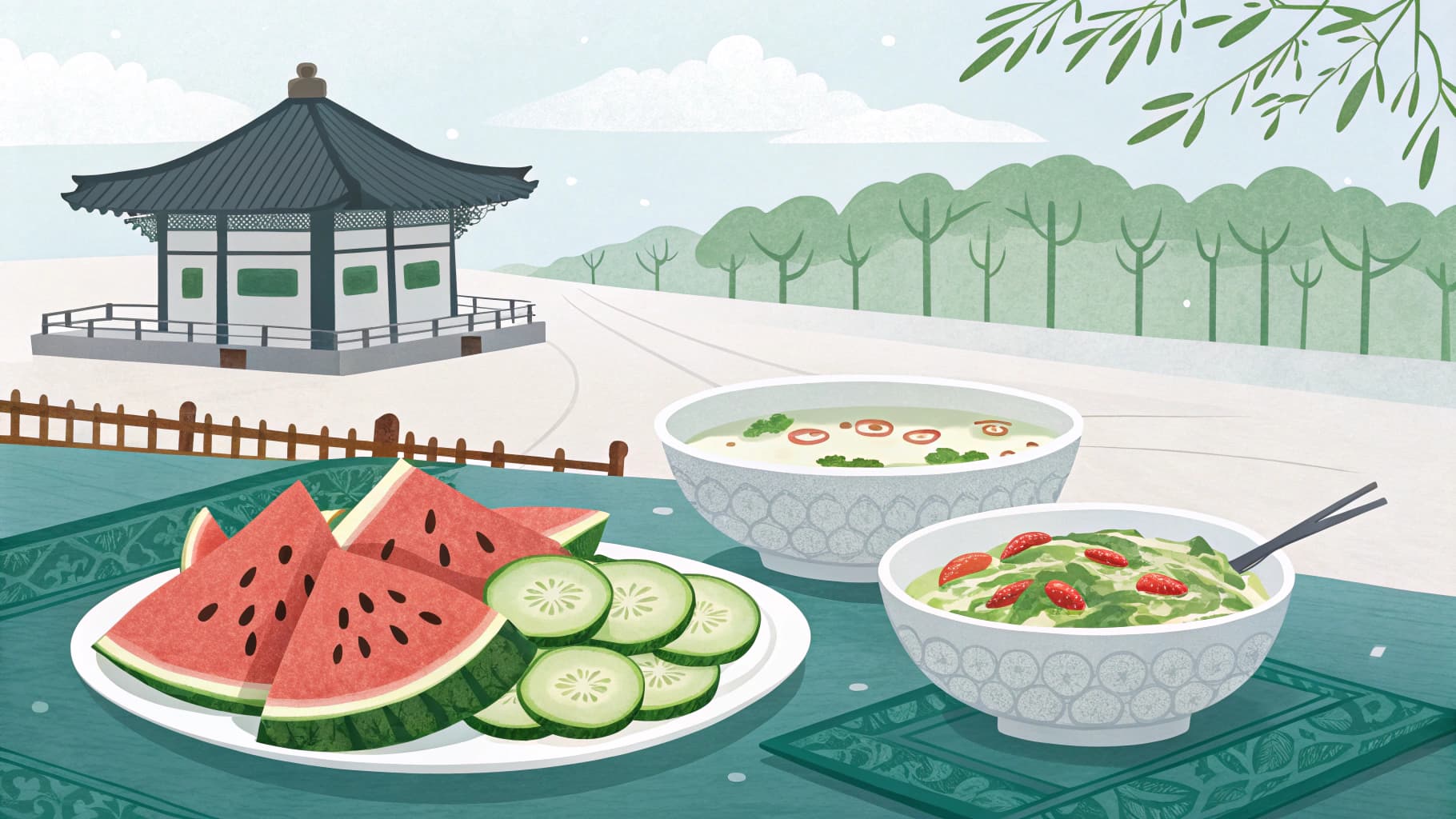 또한 더위에 지친 몸을 달래기 위해 수박, 참외 같은 과일도 많이 섭취되었습니다.