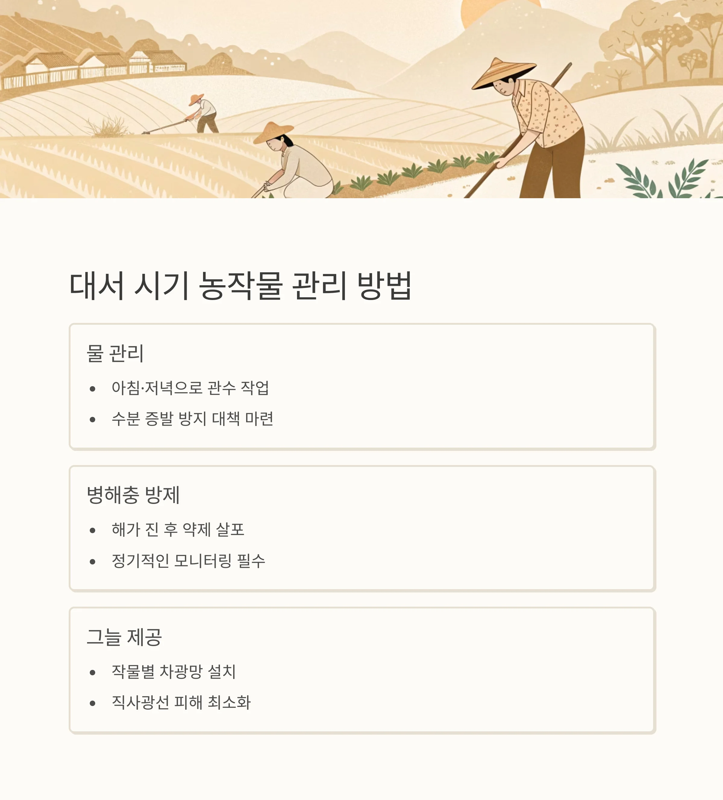다음은 대서 시기 농작물 관리 팁을 정리한 표입니다.
