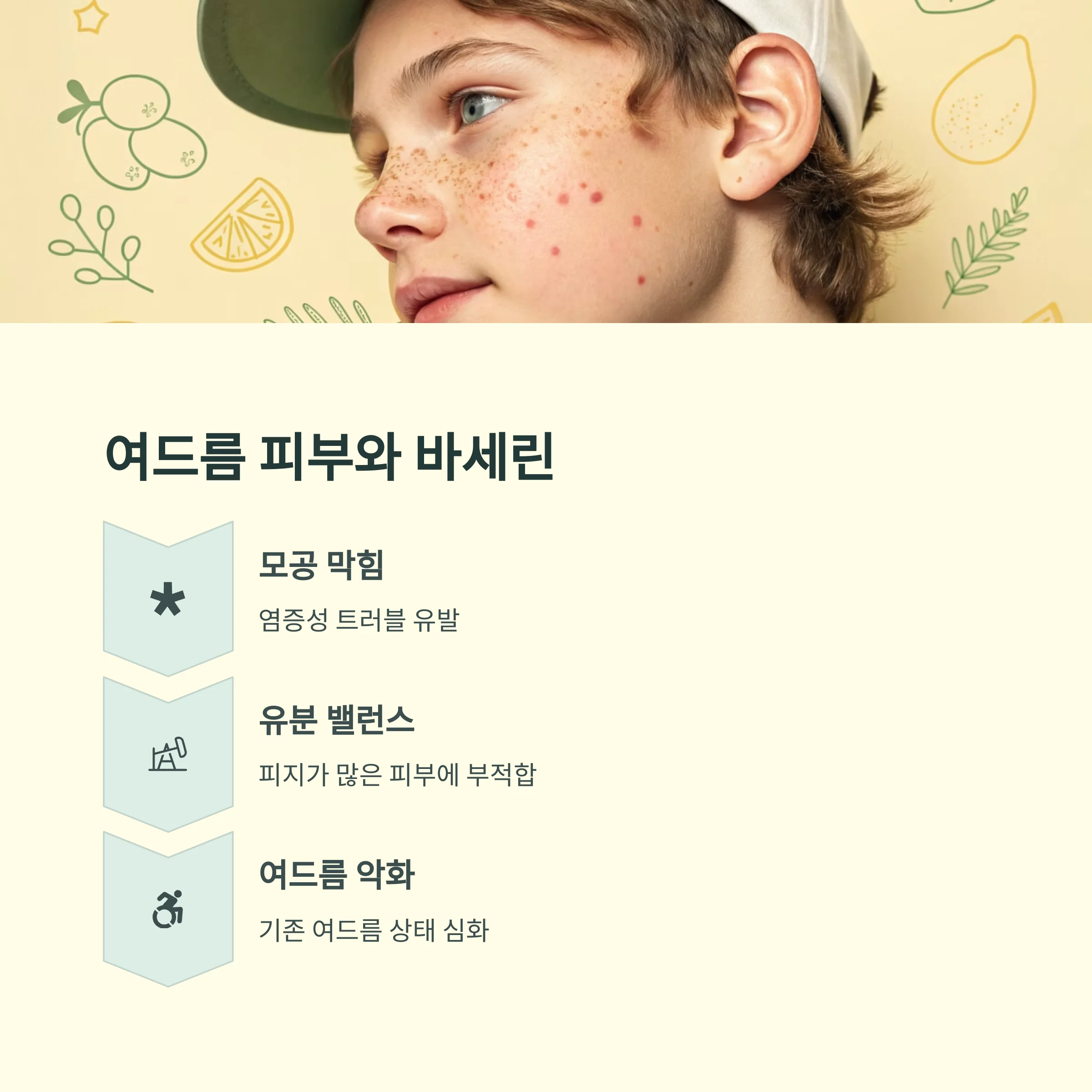 특히 이미 피지가 많은 피부에 바세린을 더하면 유분 밸런스가 무너져 여드름이 더 심해질 수 있습니다.