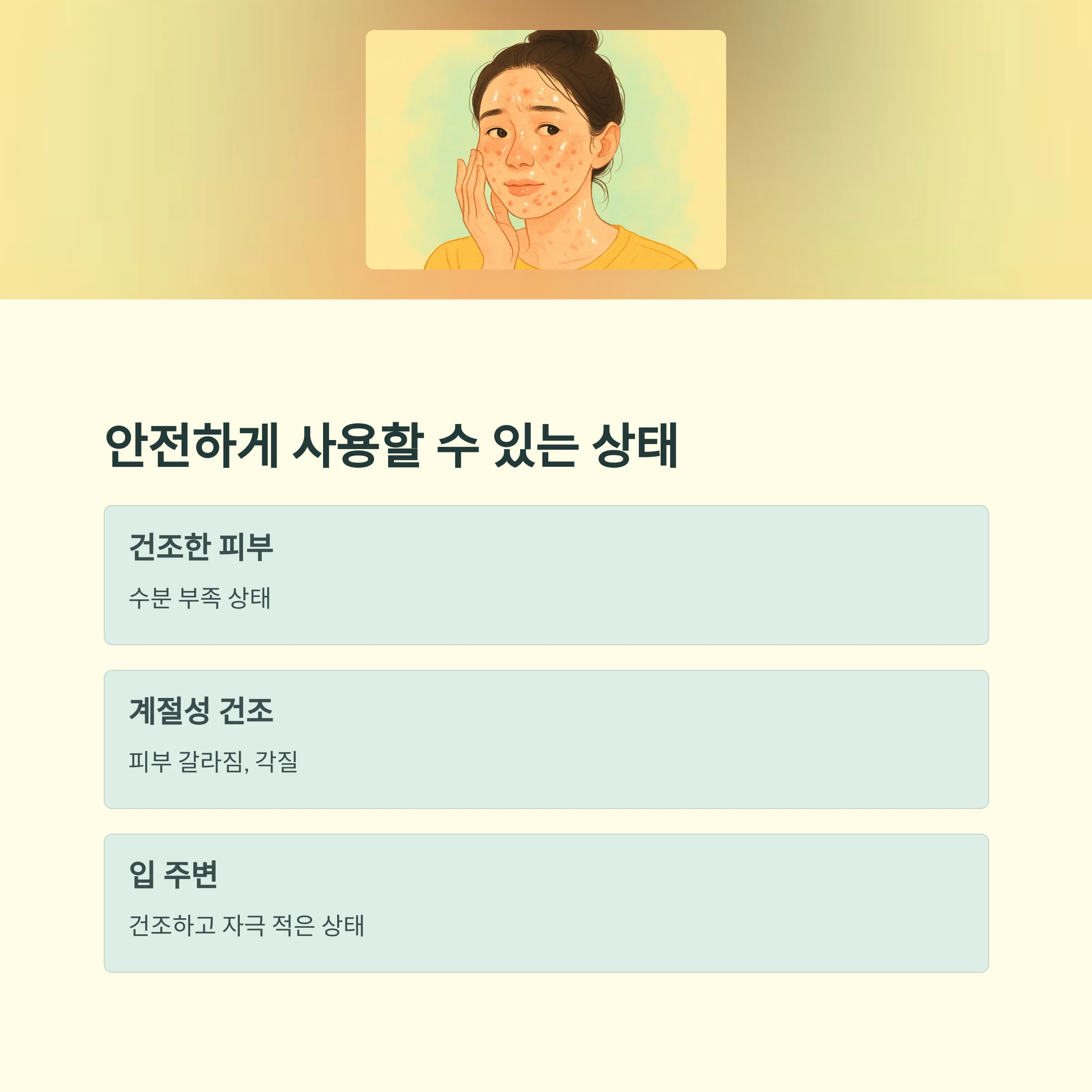 특히 건조한 피부나 갈라진 부위에 효과적으로 사용됩니다.