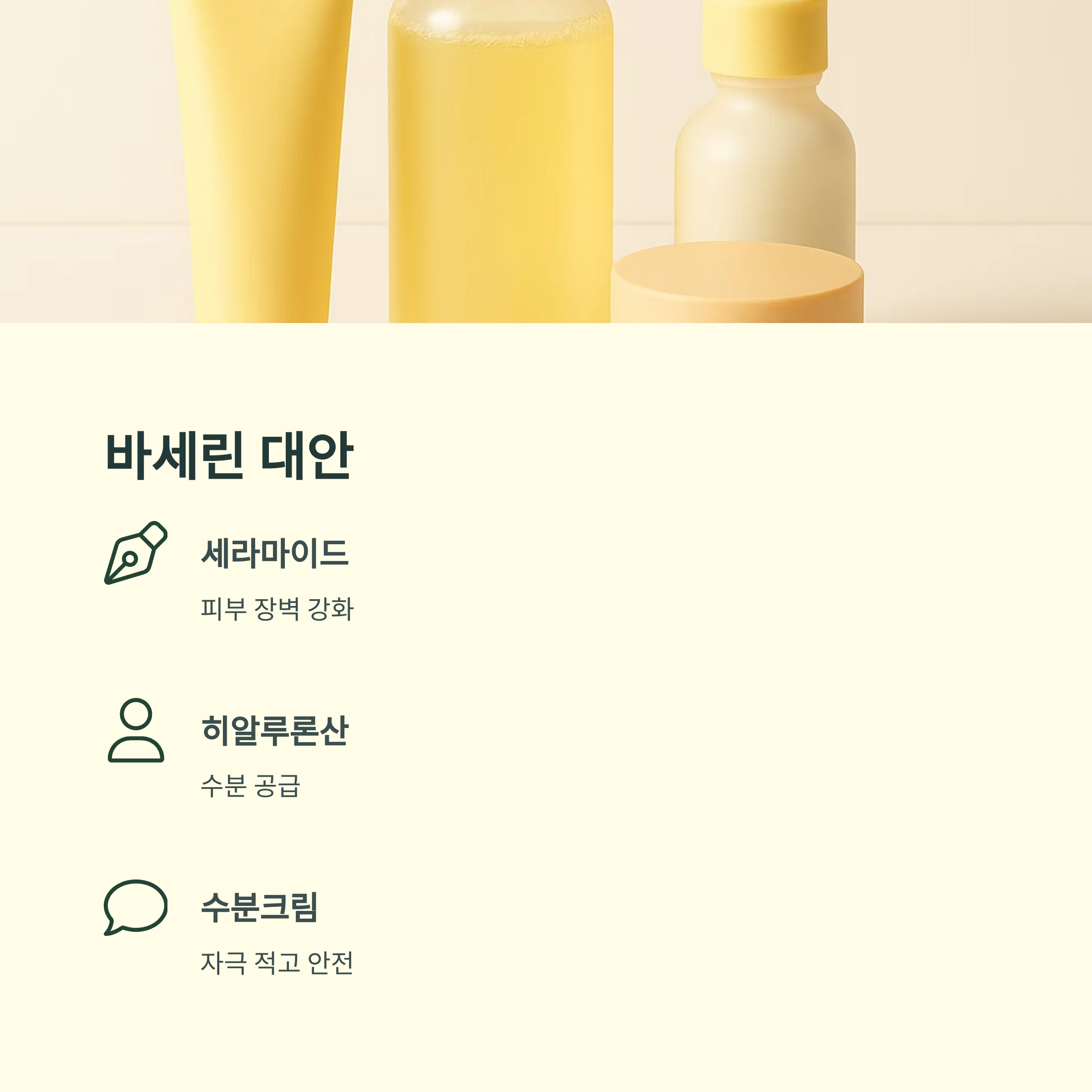 만약 바세린이 맞지 않는다면 세라마이드나 히알루론산 성분의 수분크림을 사용하는 것도 좋습니다.
