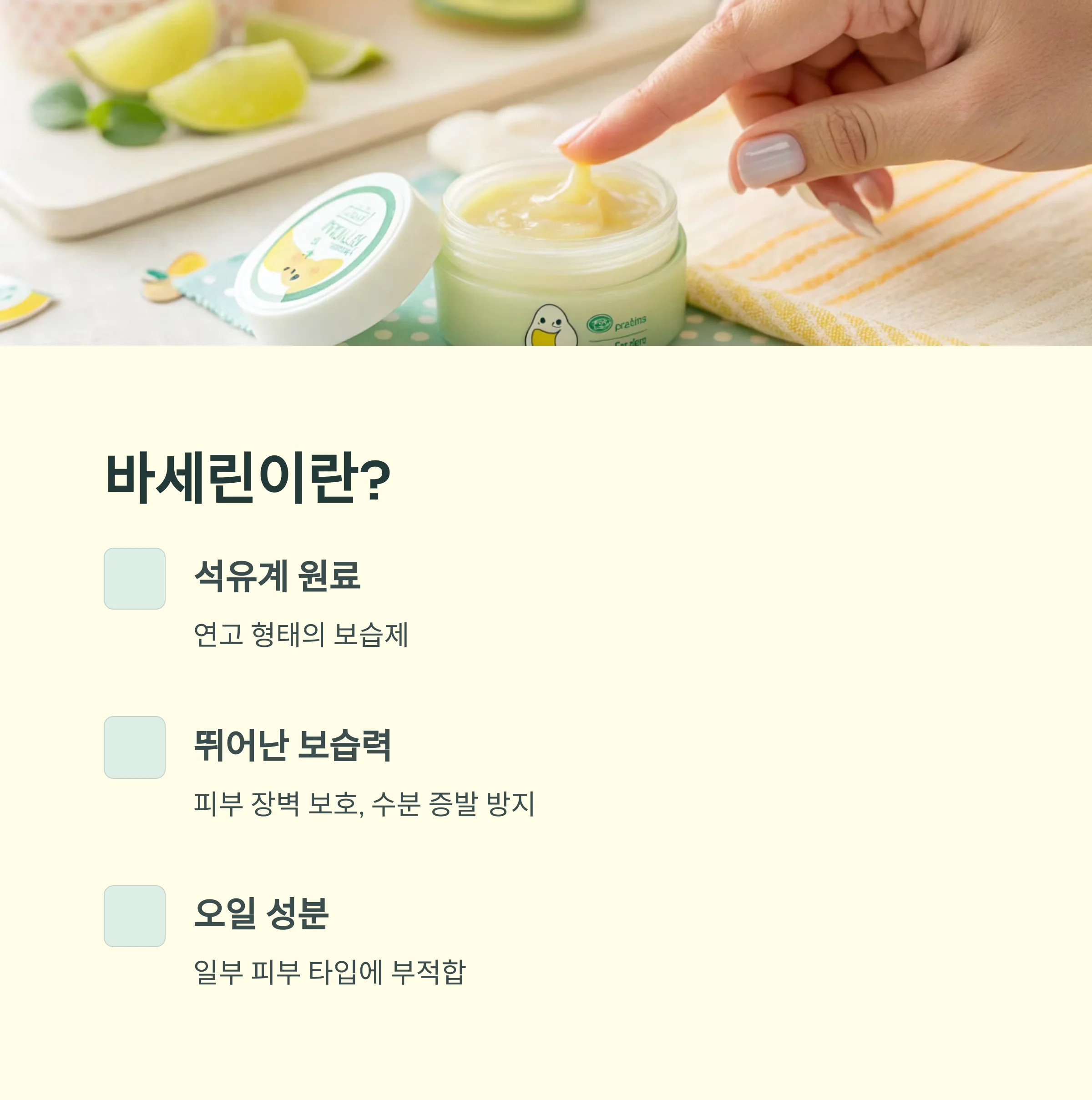 | 바세린 활용법 총정리! 케어부터 생활 꿀팁까지 (0) | 2025.06.15 |