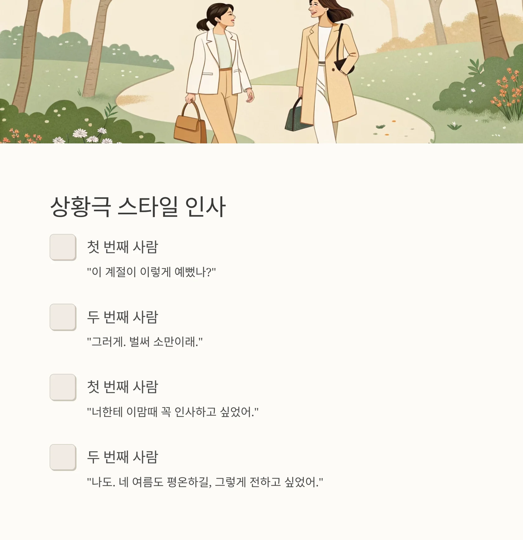 11. 상황극 스타일 인사 예시