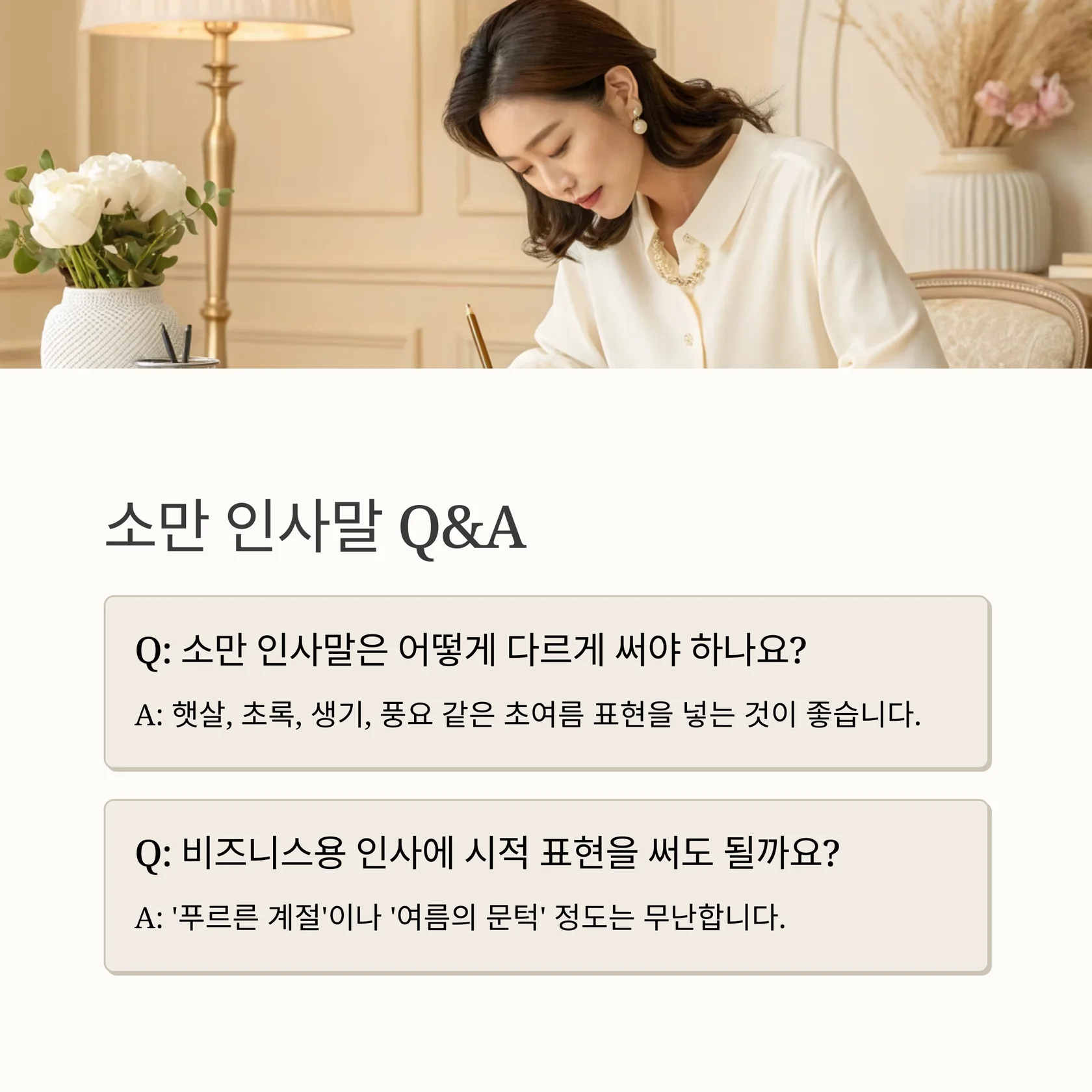Q: 소만 인사말은 다른 절기와 어떻게 다르게 써야 하나요?