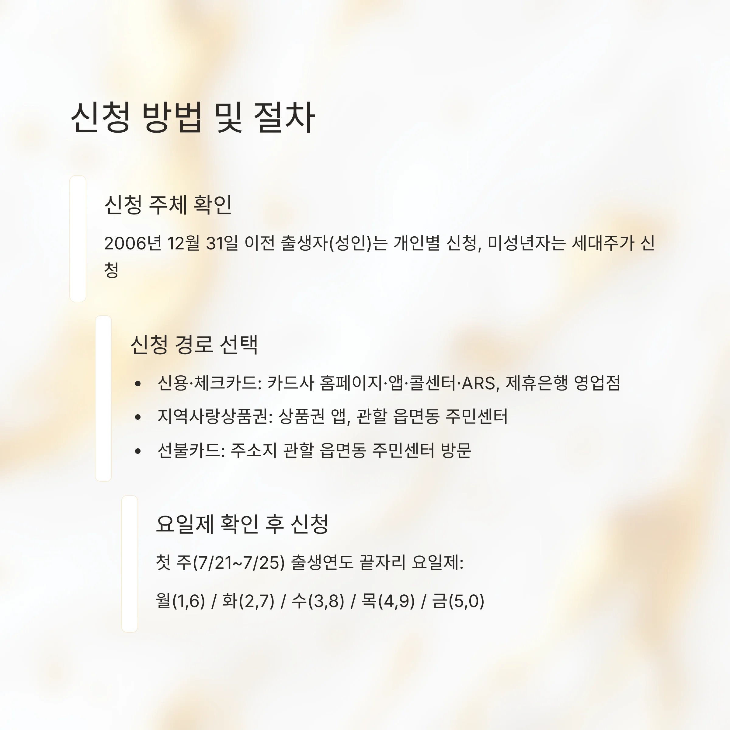 - 신청 주체: 2006년 12월 31일 이전 출생자(성인)는 개인별 신청, 미성년자는 세대주가 신청