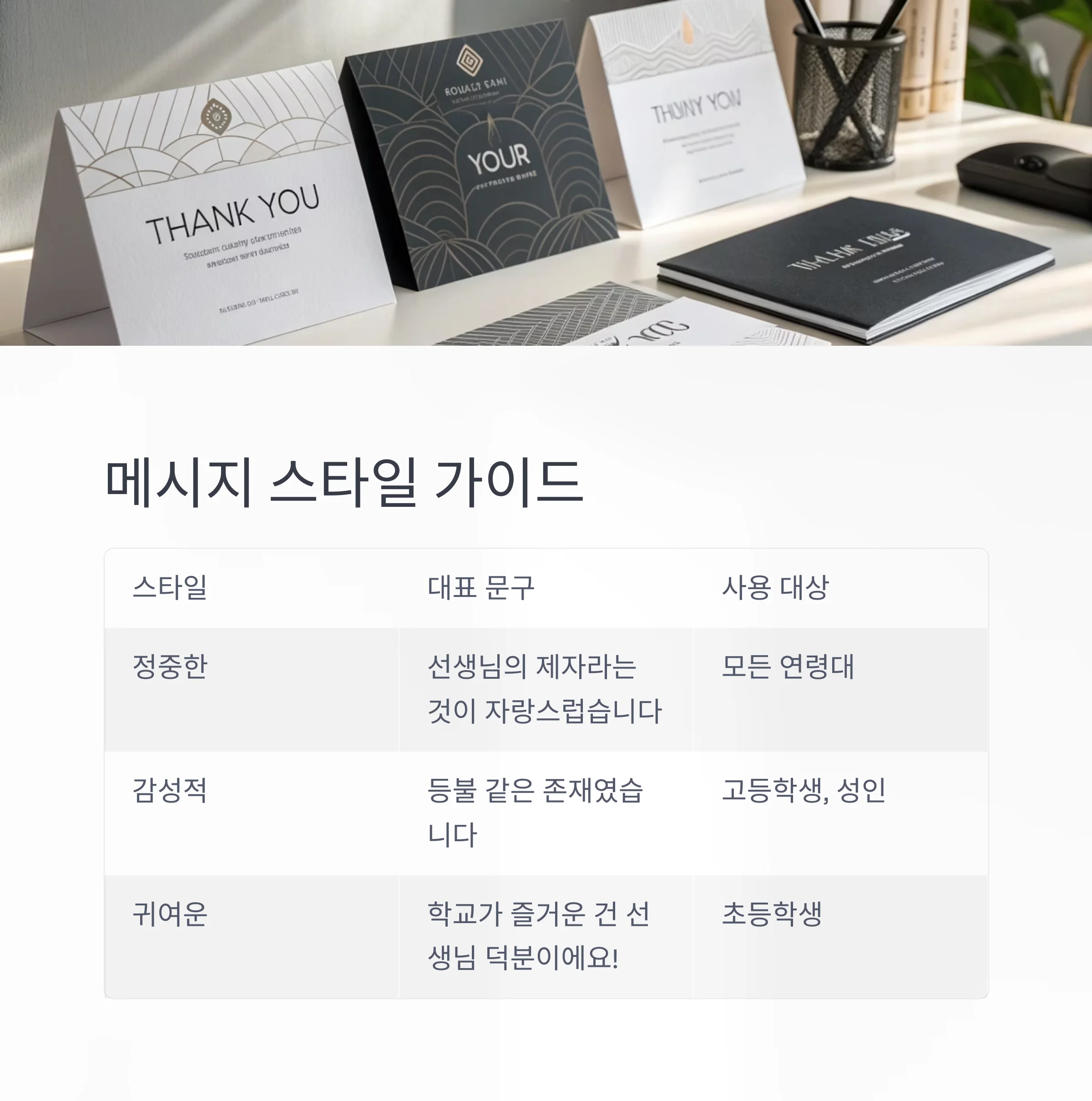 | 스타일 구분 | 대표 문구 | 사용 대상 |