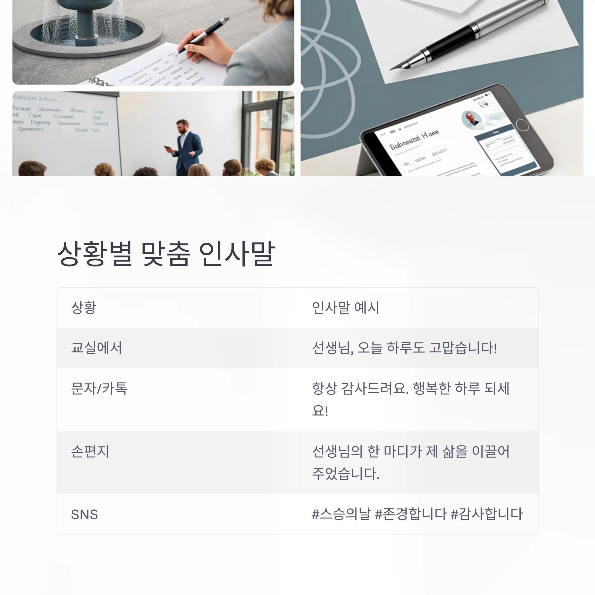 | SNS 게시글 | "#스승의날 #존경합니다 #감사합니다 선생님" |