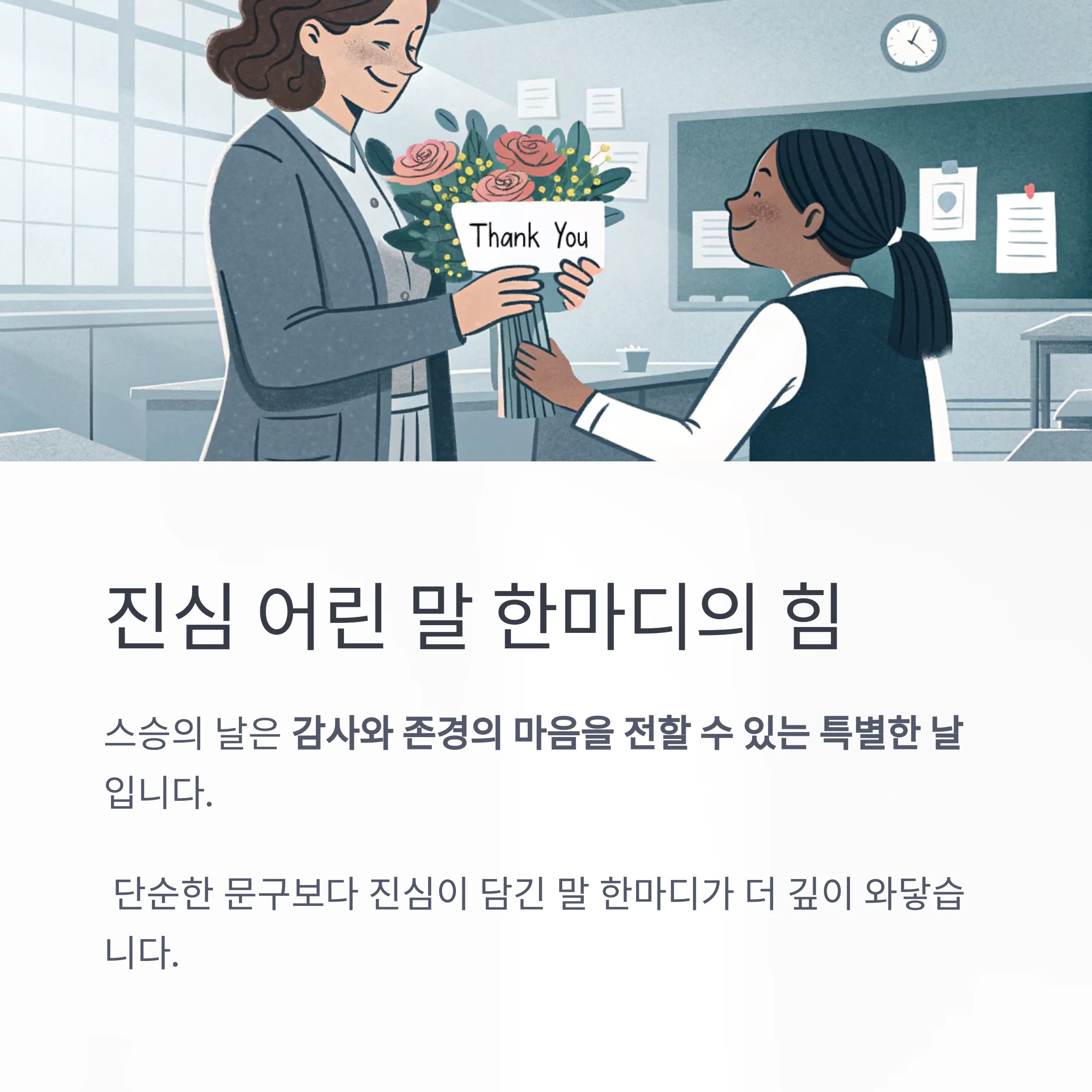 단순한 문구보다 진심 어린 말 한마디가 선생님의 마음에 더 깊이 와닿을 수 있습니다.