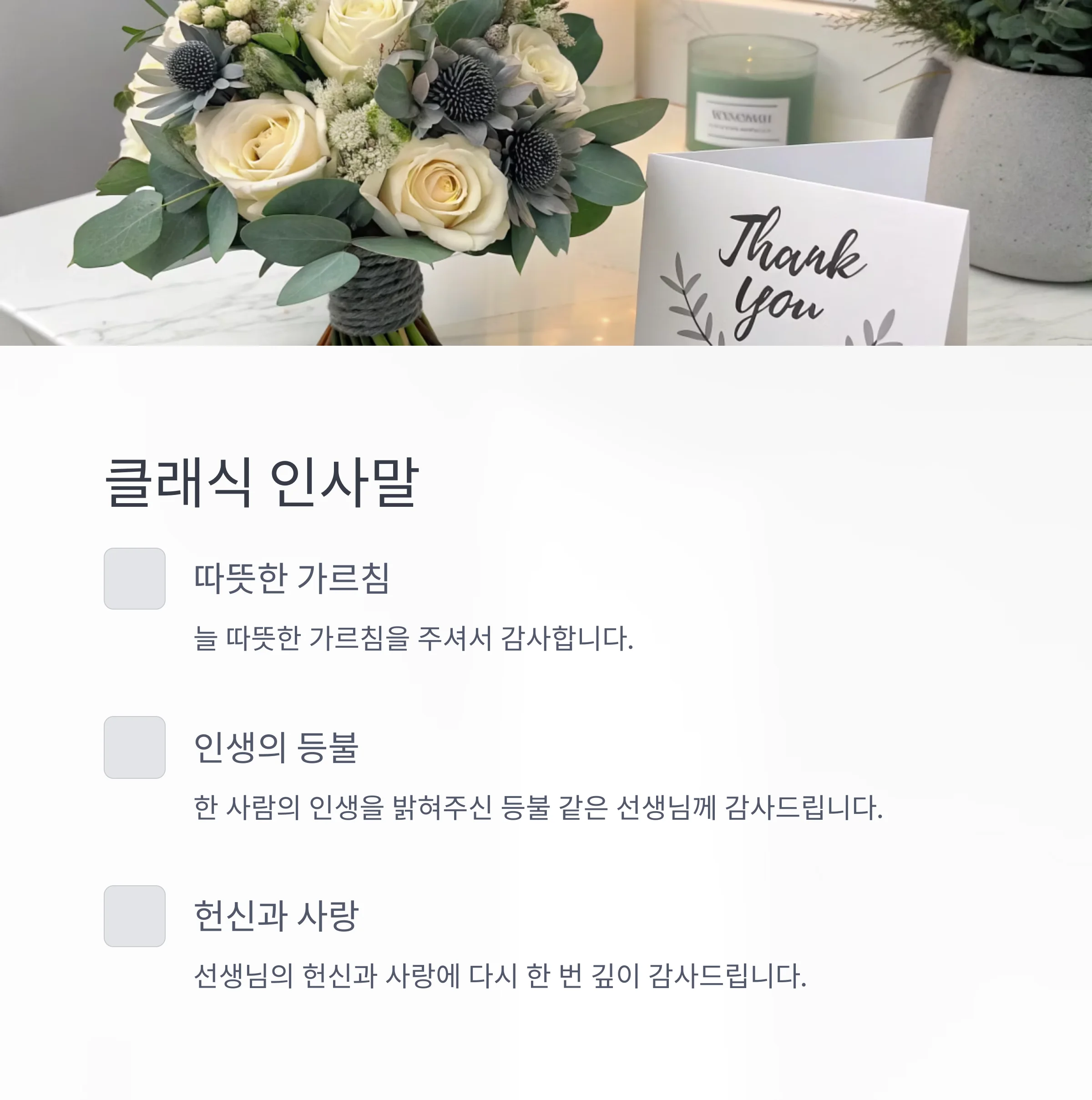 선생님께 전하는 진심 어린 감사 인사