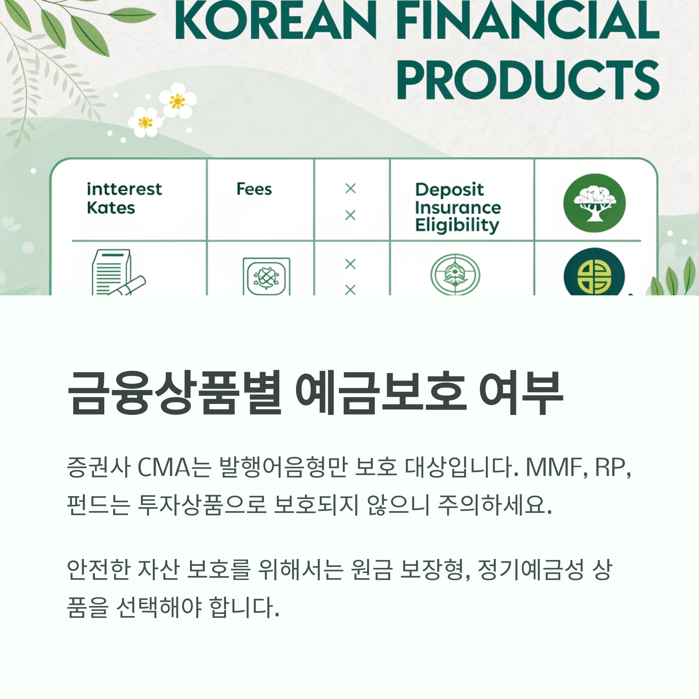 단, 이들 자산은 예금자보호 대상은 아니므로 자산 규모와 위험 수용 능력을 감안해 전략적으로 접근해야 합니다.