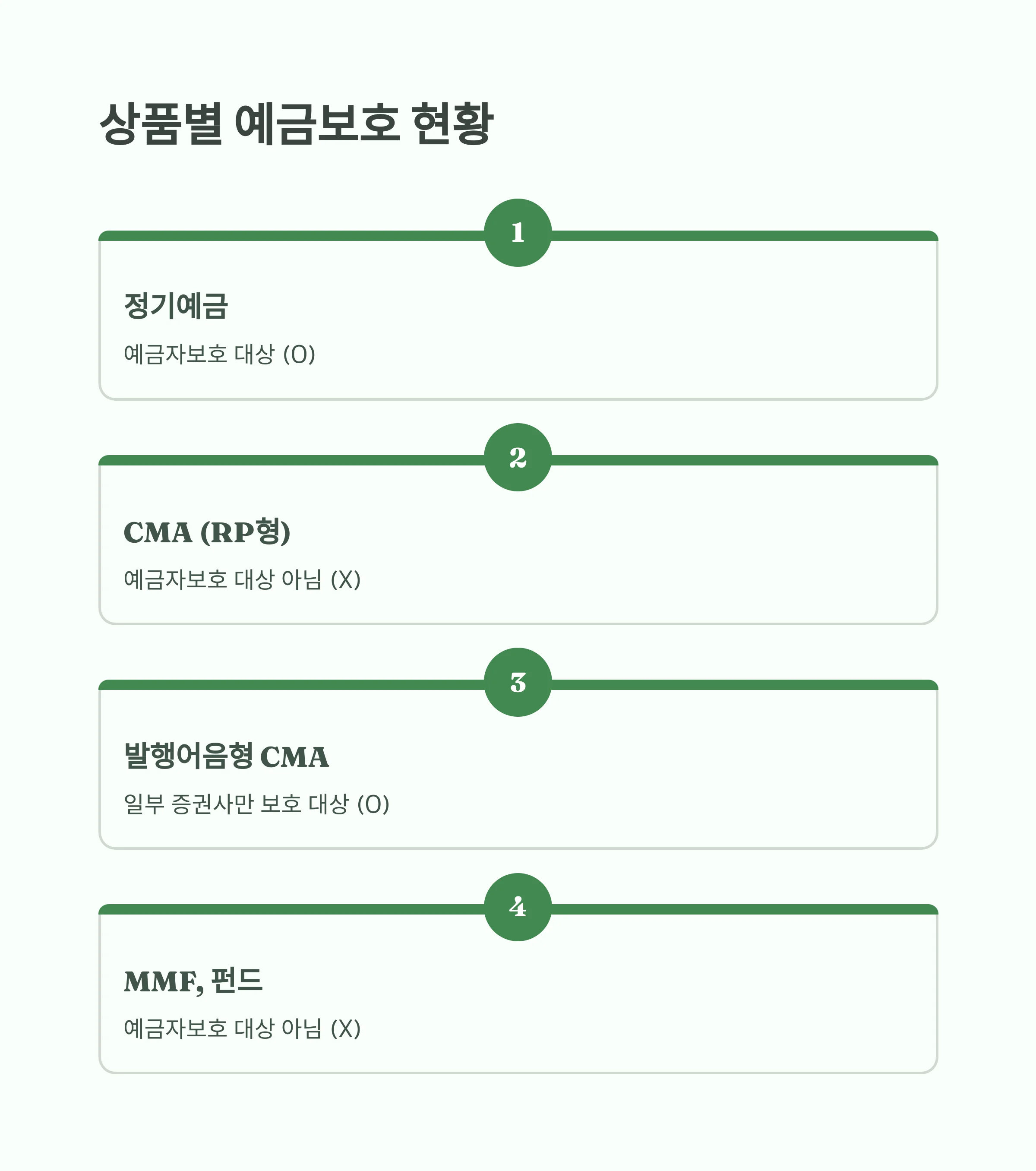 MMF, RP, 펀드 등은 실질적으로 투자상품이므로 보호 대상이 아닙니다.