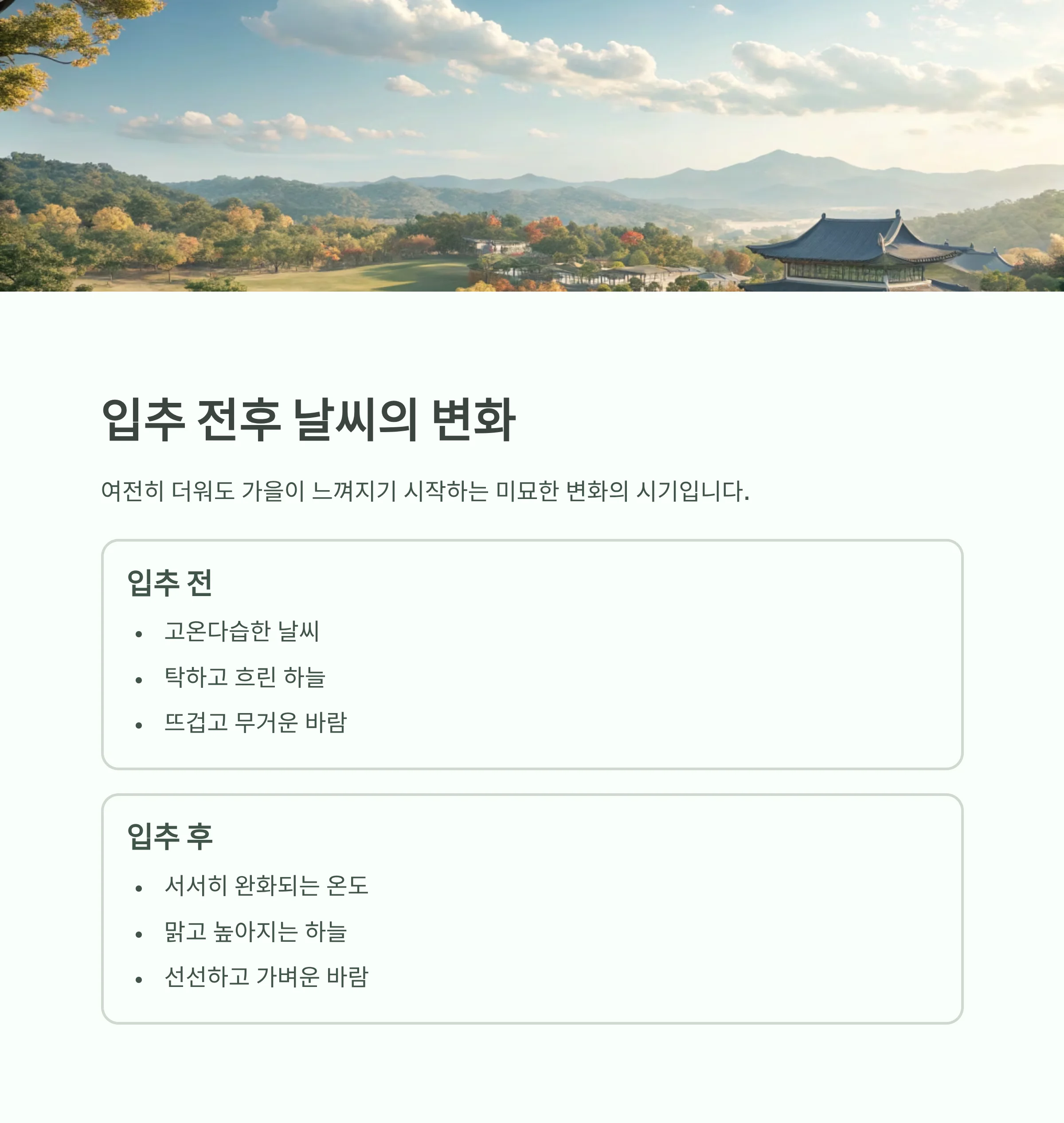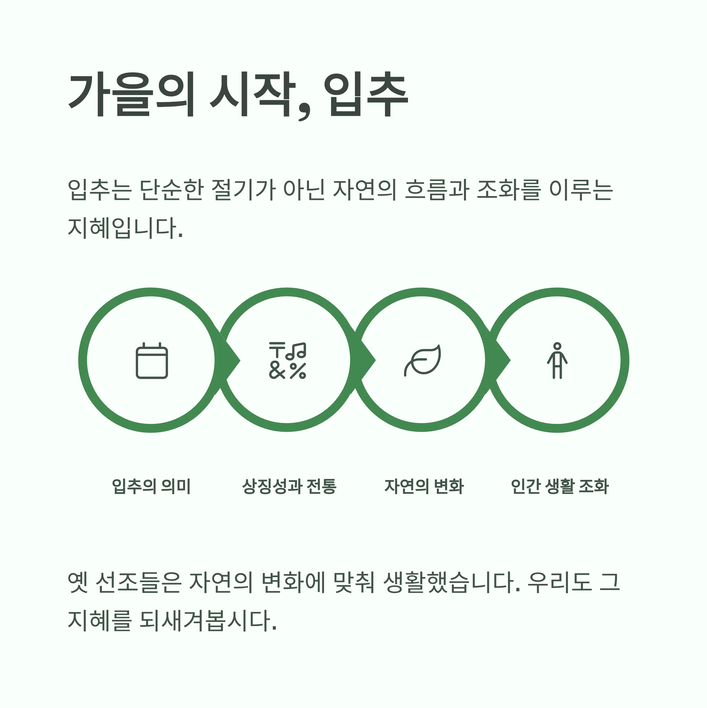 현대인들도 입추를 맞아 자연의 흐름을 의식하며 계절 전환에 집중해 볼 수 있습니다.