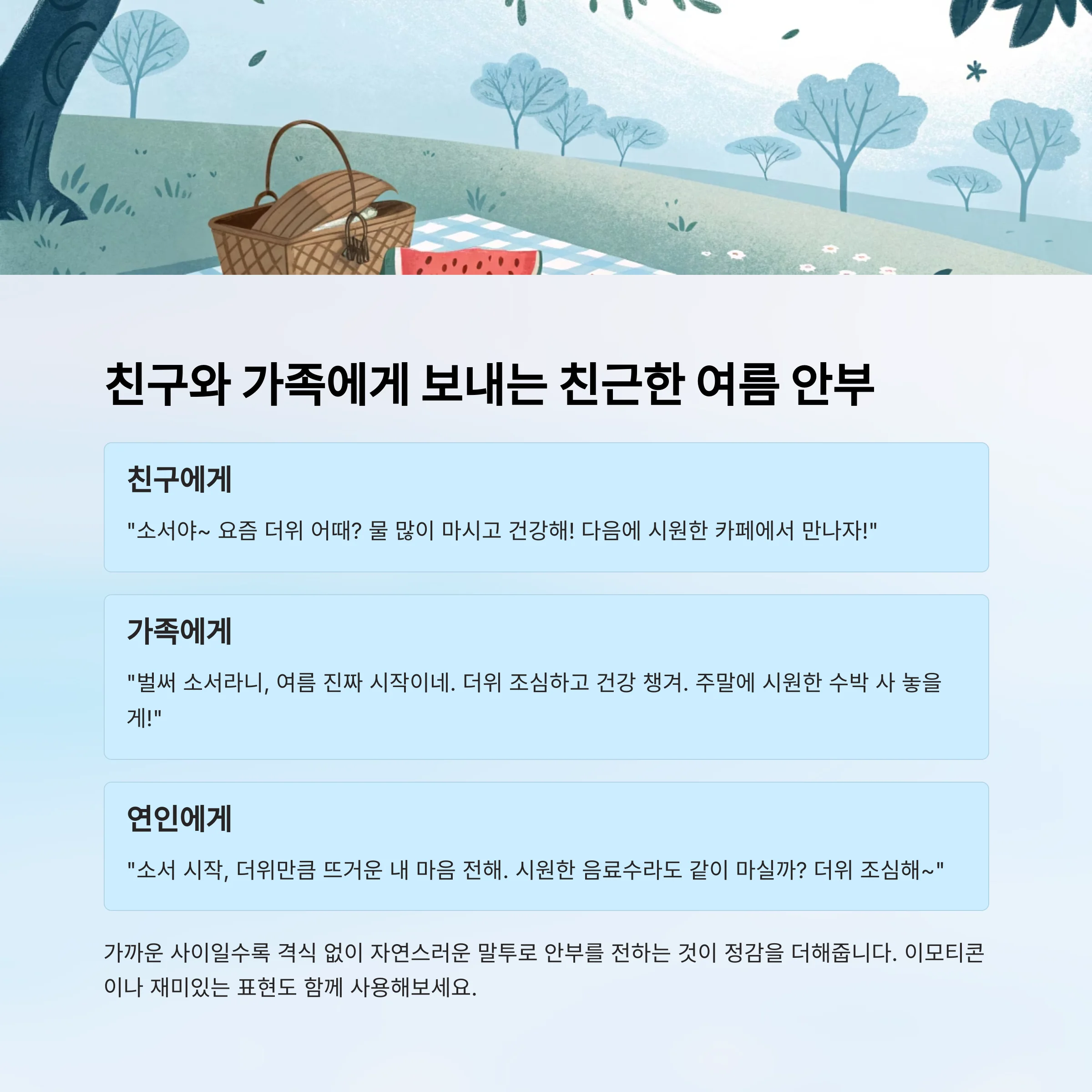 친근한 여름 안부, 가족과 친구에게 보내는 문구
