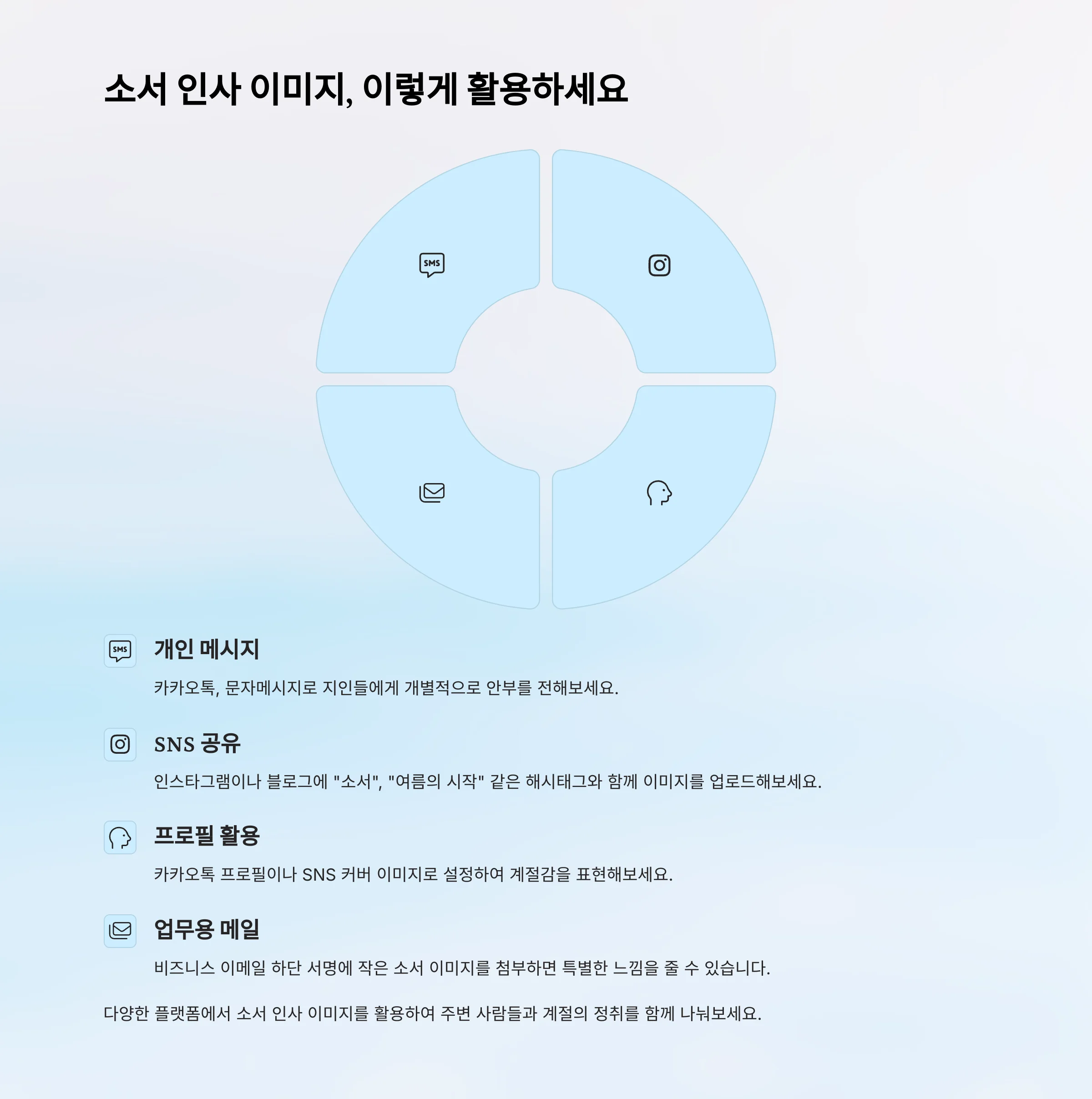 소서 인사말 이미지는 개인 메시지 외에도 다양한 곳에 활용됩니다.