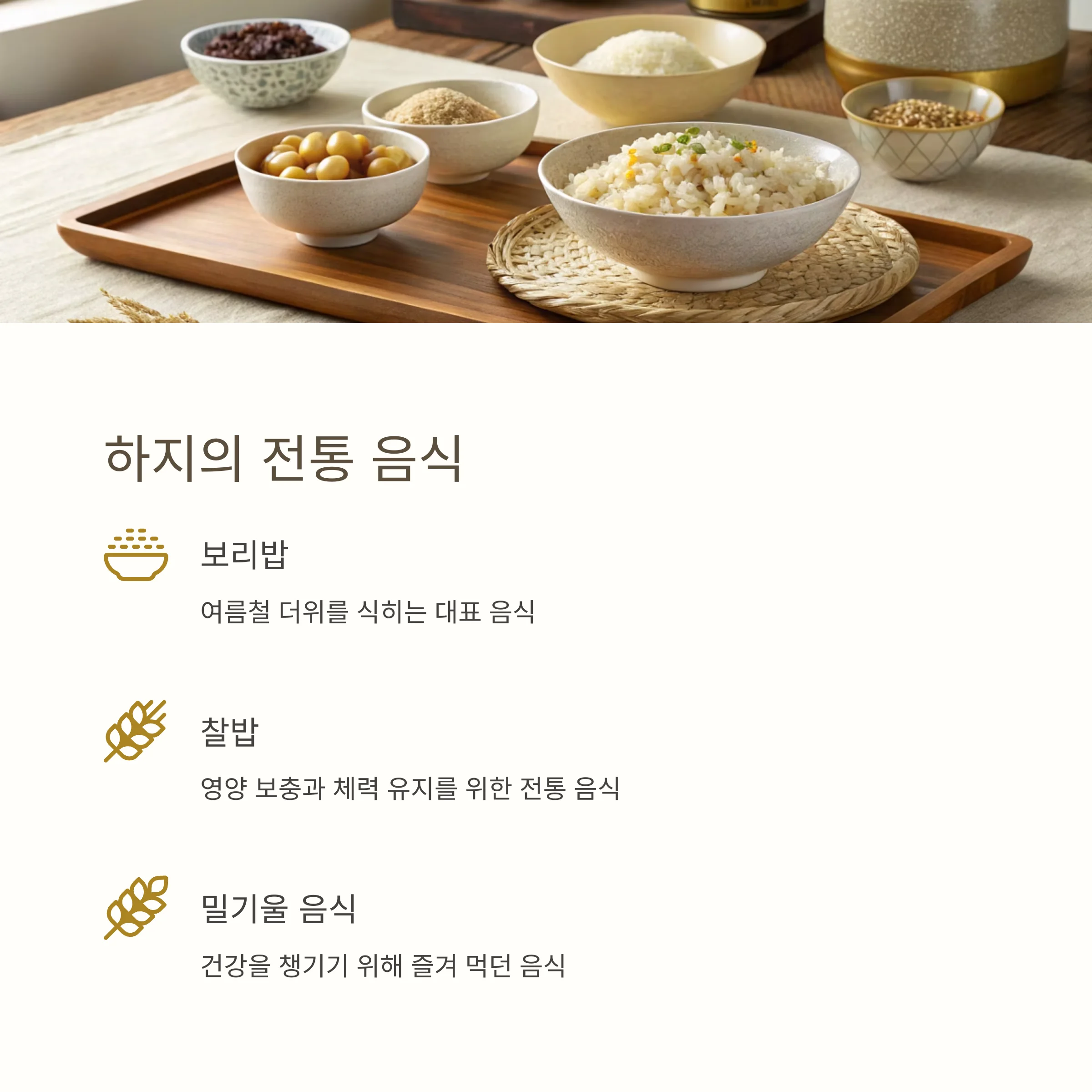 전통적으로 하지 무렵에는 '밀기울 음식'이나 보리밥, 찰밥을 먹으며 건강을 챙겼습니다.