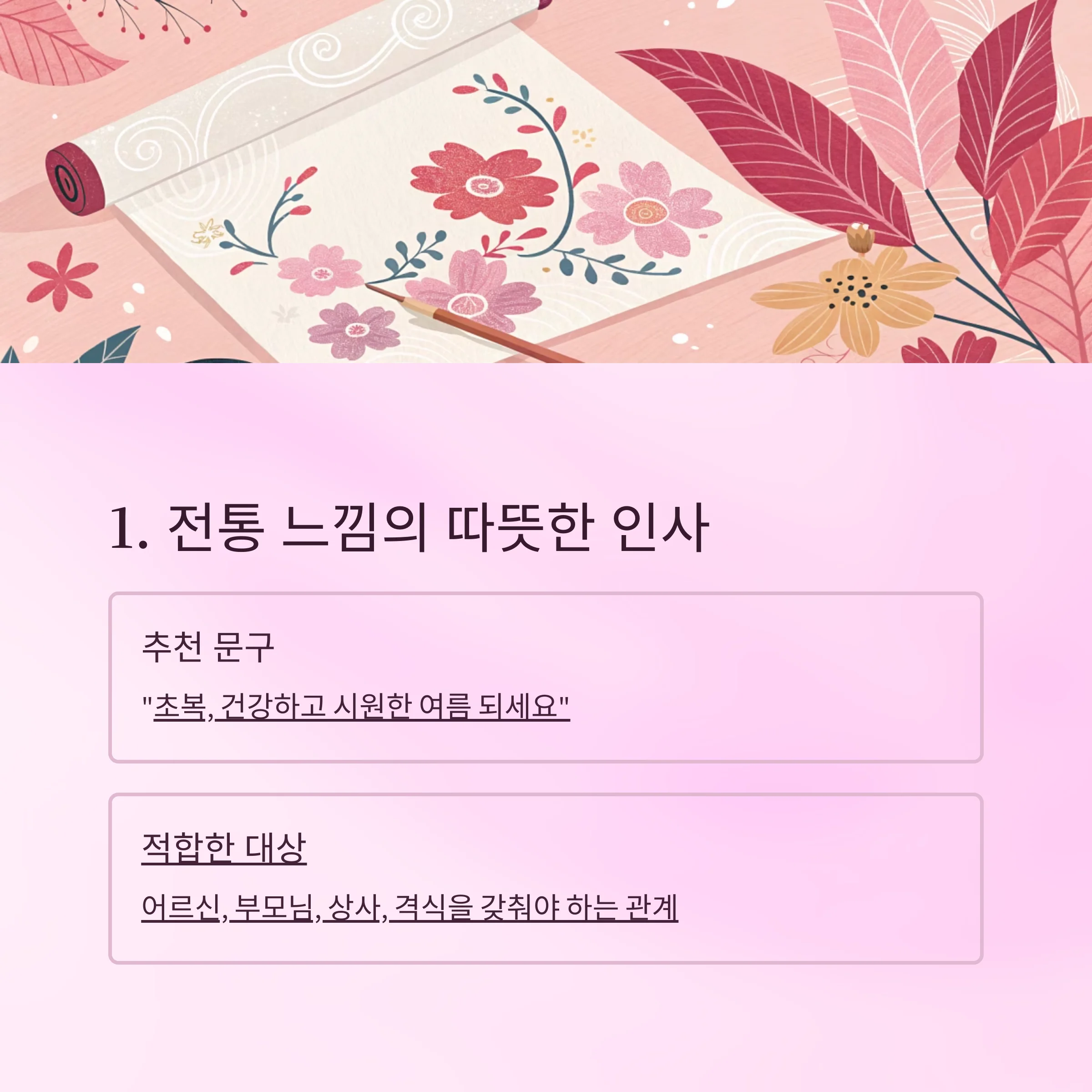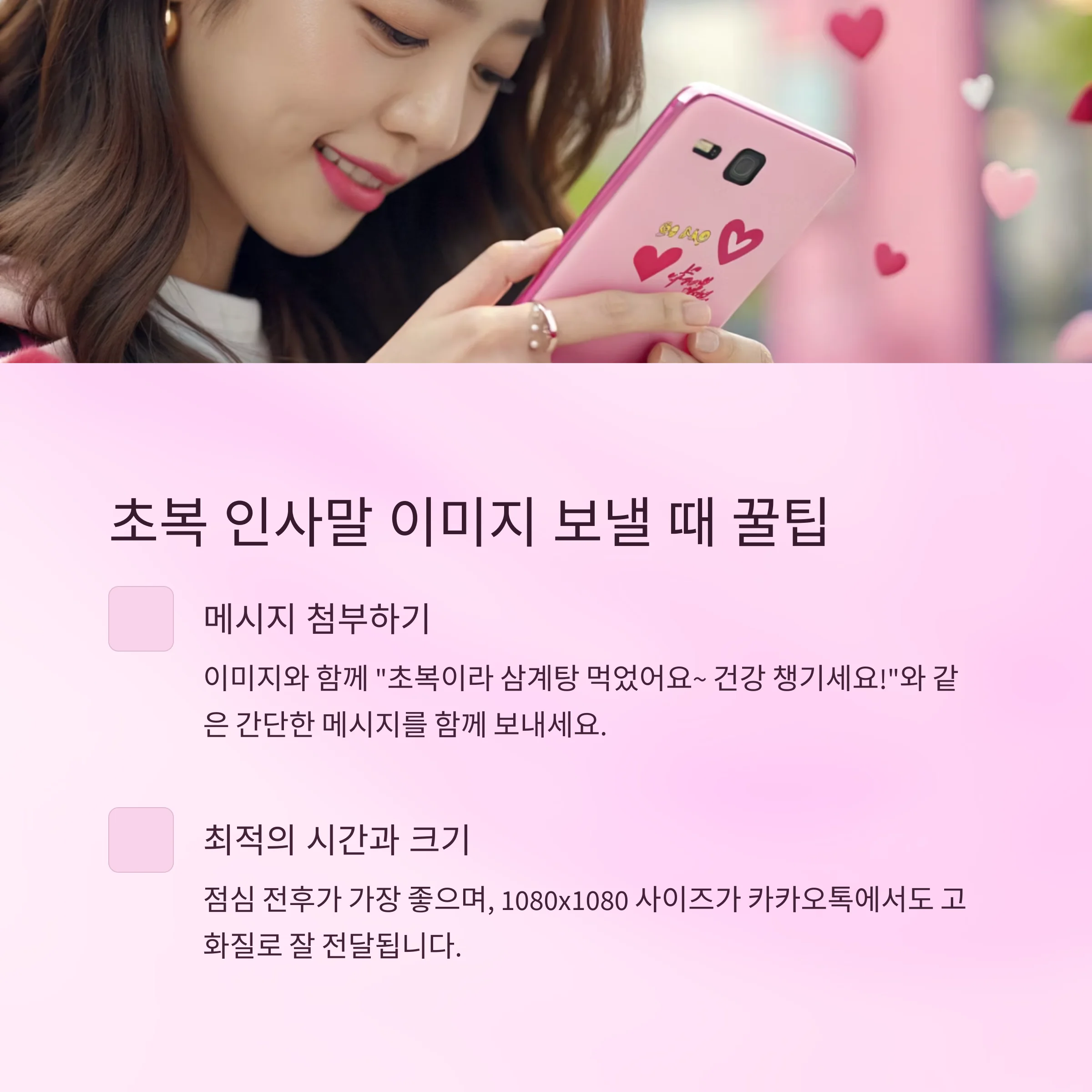 | 정사각형(1080x1080) | 인스타, 카톡용 최적화 | 초복엔 마음도 따뜻하게! |