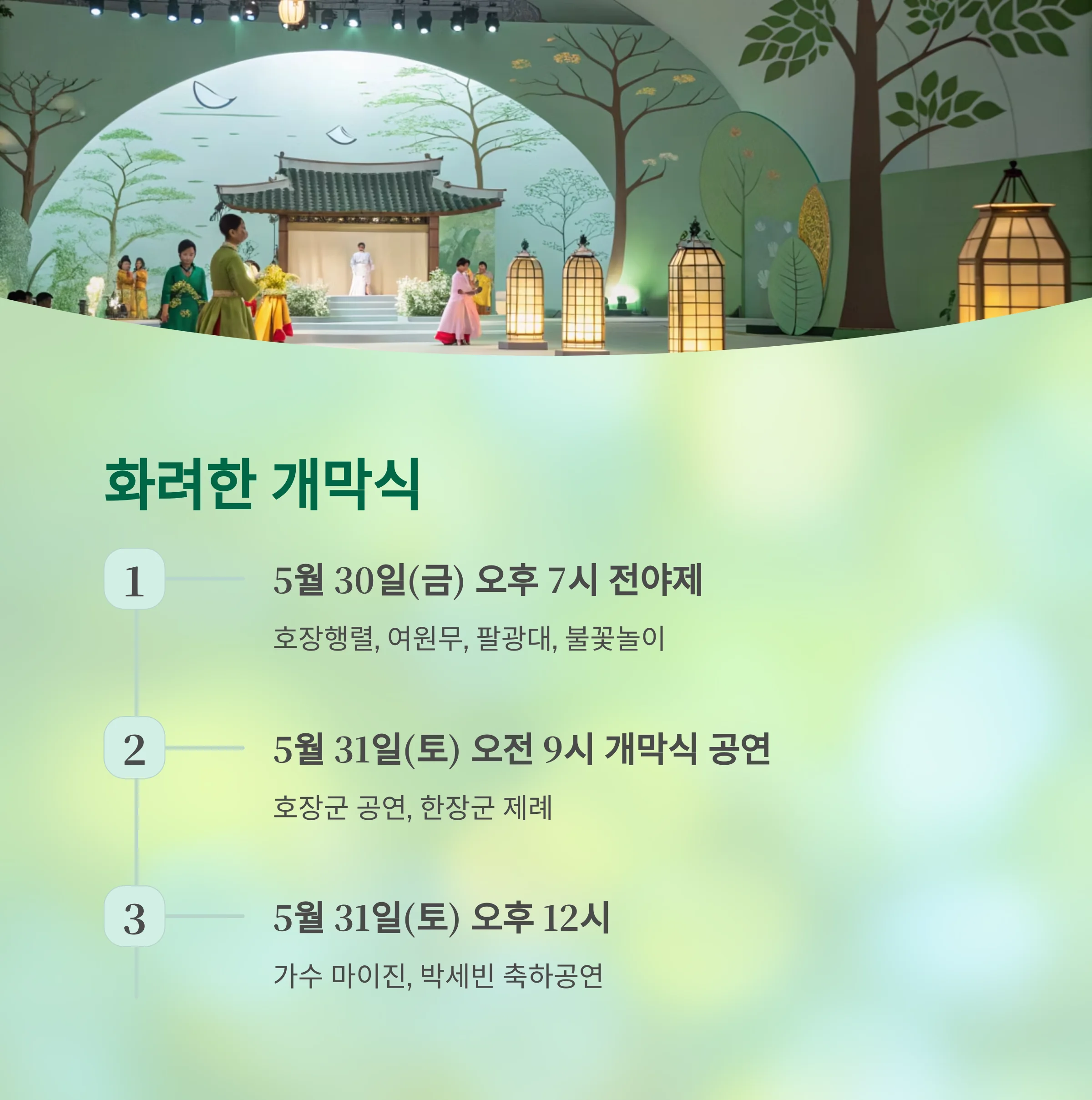 개막식은 5월 31일 토요일 오전 11시부터 개막식 공연을 시작으로 열리게 됩니다.