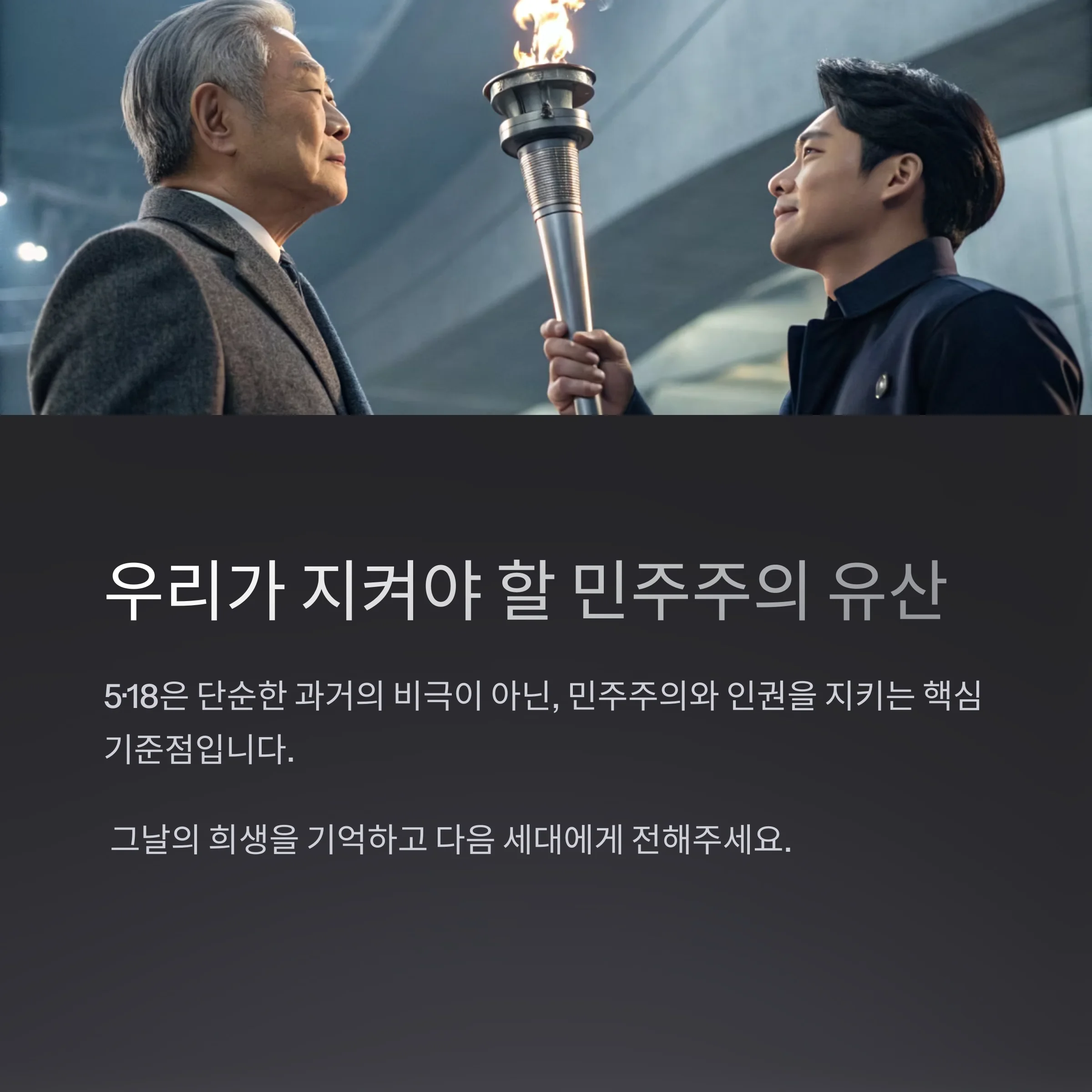 5·18 민주화운동은 단지 과거의 비극이 아닌, 오늘날 민주주의와 인권, 시민의 권리를 지켜내는 데 있어 핵심 기준점입니다.