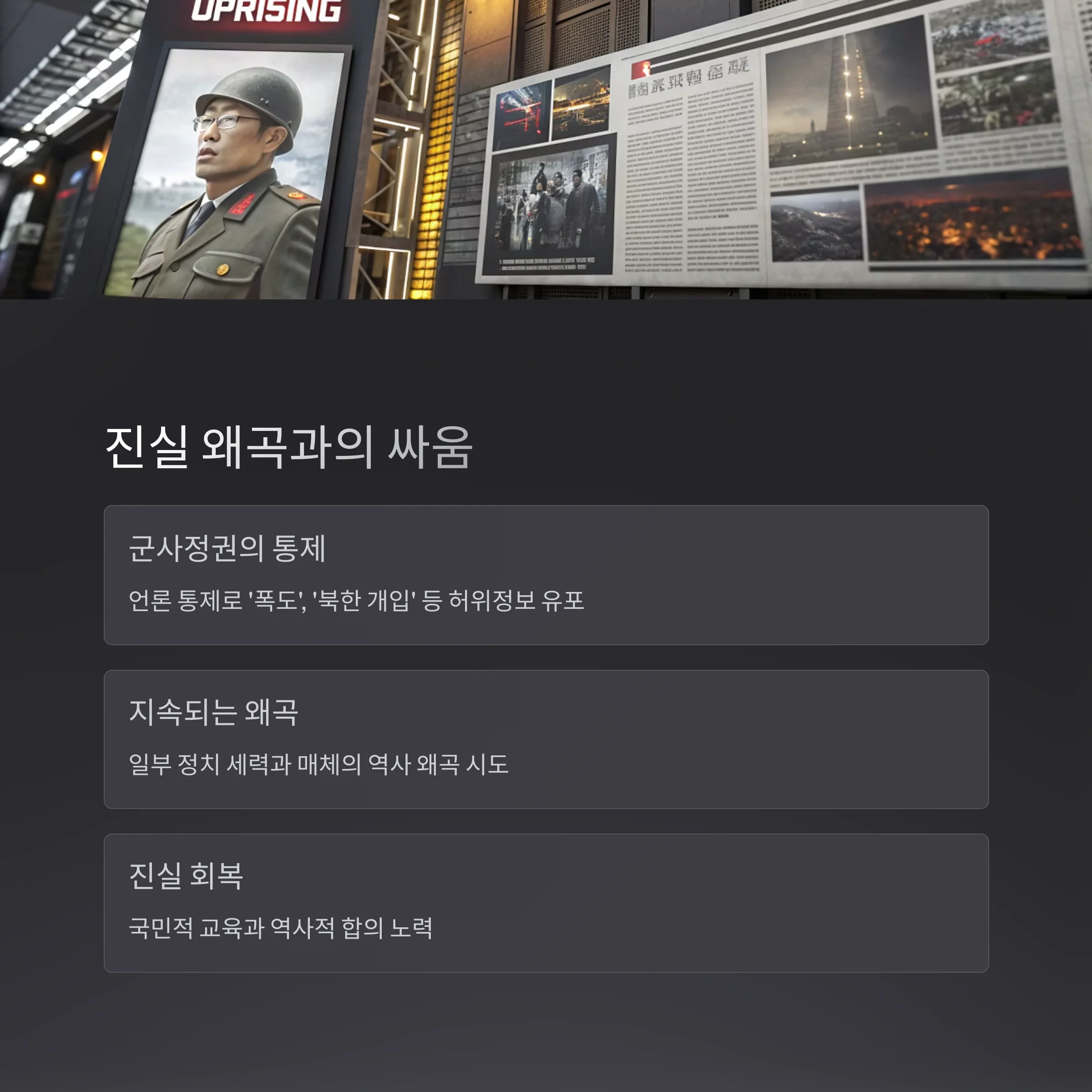 이는 군사정권의 통제 아래 언론이 사실을 왜곡하고, 진상 규명을 차단했기 때문입니다.