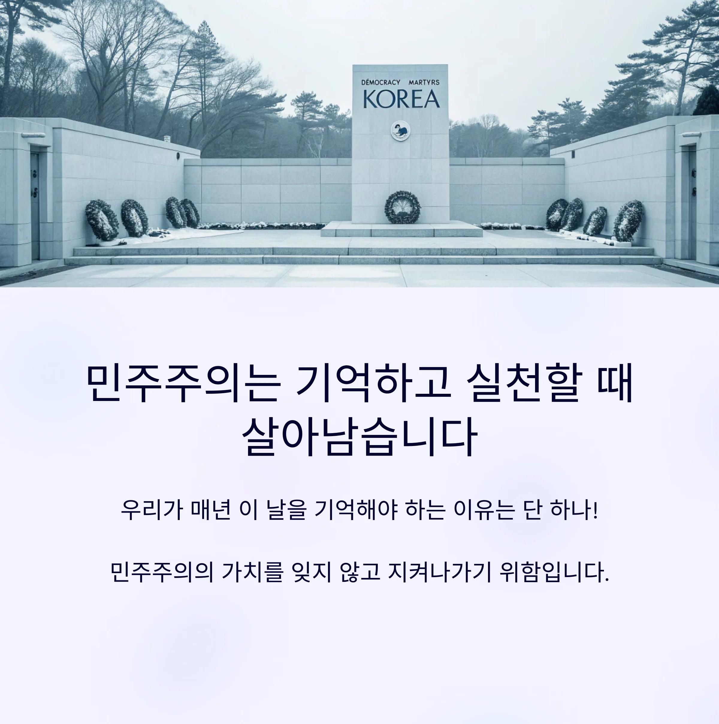 우리가 매년 이 날을 기억해야 하는 이유는 단 하나, "민주주의는 기억하고 실천할 때만 살아남는다"는 사실을 잊지 않기 위해서입니다.