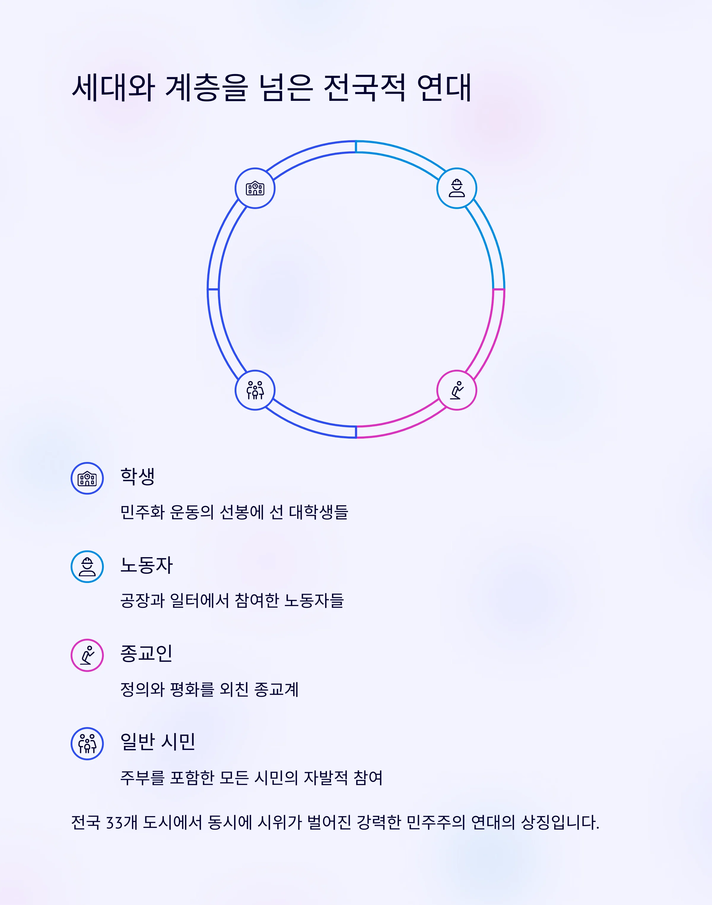 학생, 노동자, 종교인, 일반 시민까지 모두가 함께 했습니다.