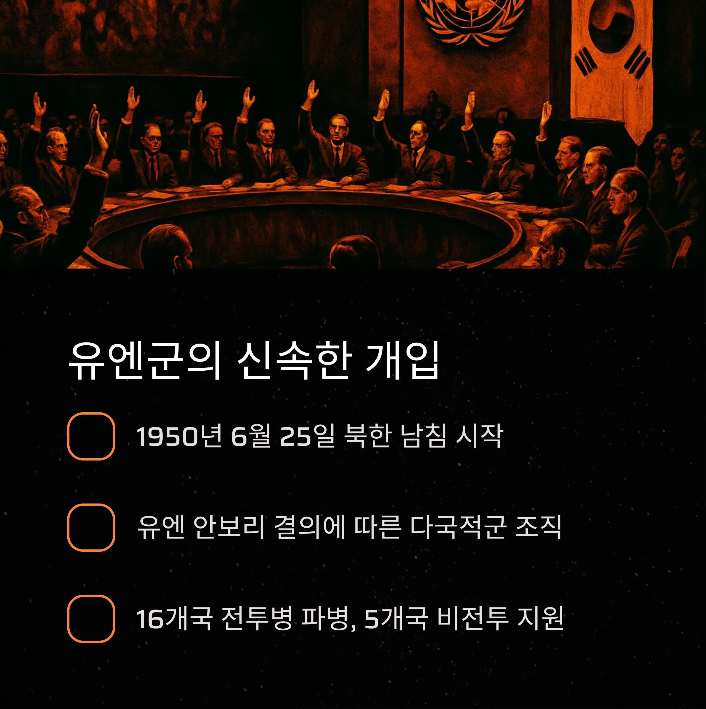 1950년 6월 25일 북한의 남침으로 시작된 전쟁에 유엔은 즉각적인 개입 결정을 내렸습니다.