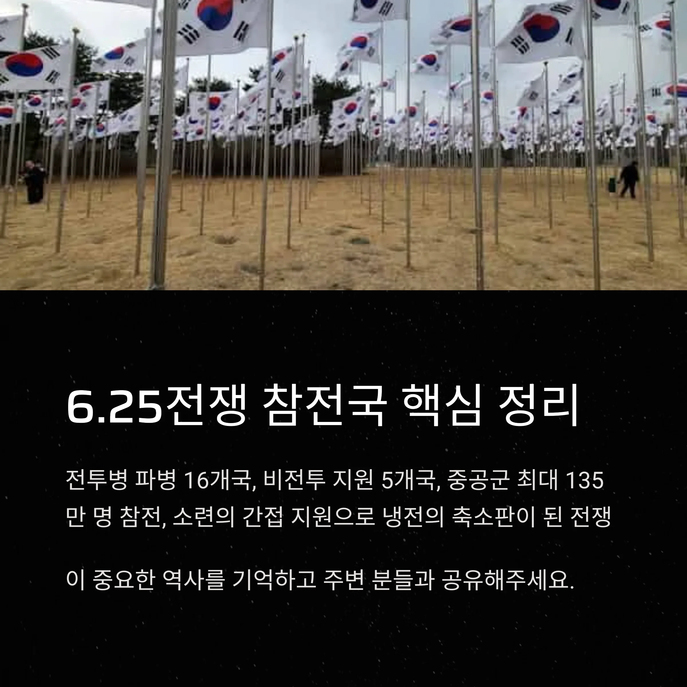 6.25 전쟁은 단순한 남북한 간의 전쟁을 넘어 국제전 양상을 띠며 전 세계 21개국 이상이 직간접적으로 개입한 전쟁이었습니다.